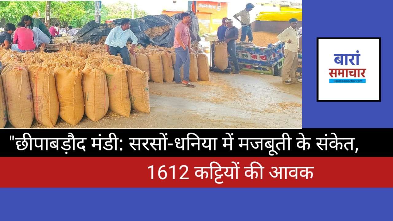 Baran News -“छीपाबड़ौद मंडी: सरसों-धनिया में मजबूती के संकेत, 1612 कट्टियों की आवक